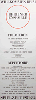 Sie bieten den Spielplan der kommenden Saison an und informieren über Theaterereignisse, wie z.B. über neue Engagements von Schauspielern, Theaterneuigkeiten, Kartenpreise und Premierentermine. Die Theaterleitung war auf Termintreue bedacht, da diese ein wichtiger Faktor bei der Gewinnung von neuen Zuschauern war. Diese Plakate sind meist beidseitig bedruckt (Bild- und Textseite), da sie vorwiegend zum Aushang in den Betrieben bestimmt waren.